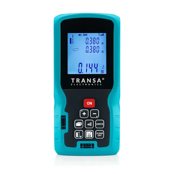 Dalmierz laserowy MeasureMe100 Transa Electronics® jest precyzyjnym przyrządem przeznaczonym do bardzo dokładnych pomiarów odległości, powierzchni i objętości. Może również mierzyć wysokość za pomocą twierdzenia Pitagorasa.